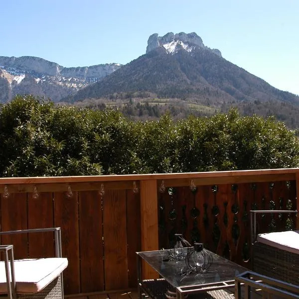 Das Le Mazot ist ein Chalet zur Selbstverpflegung und bietet eine schattige, möblierte Terrasse und Blick auf den See Lac d’Annecy.