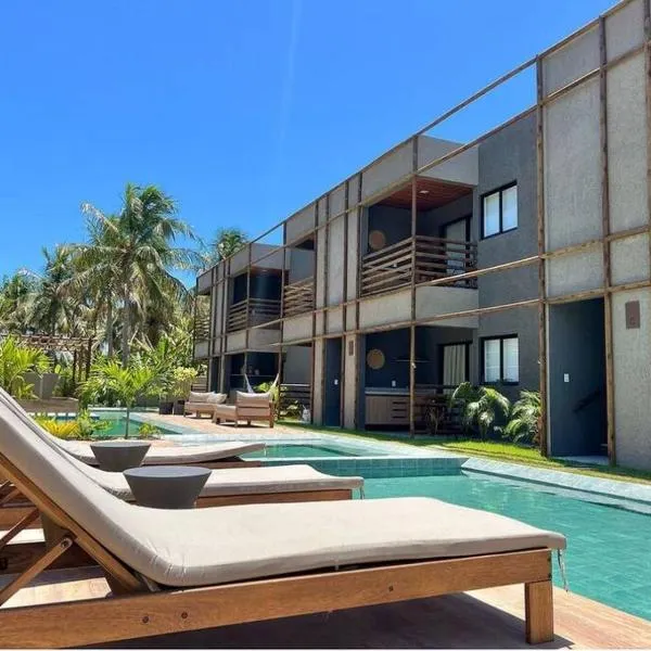 Die Unterkunft Casa Charlotte - Barra de Santo Antônio - AL besticht durch Gartenblick und einen Außenpool, einen eigenen Strandbereich sowie eine Bar, ungefähr 2 km von Strand Praia do Carro Quebrado...
