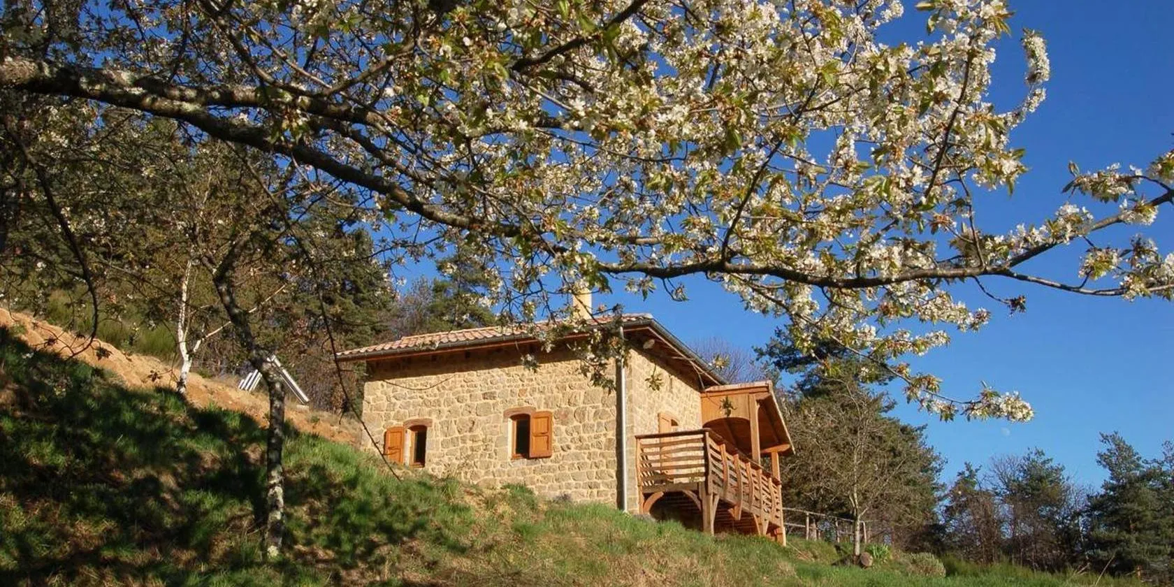 Die Unterkunft GiTE ATYPIQUE AVEC PISCINE COUVERTE en été besticht durch einen eigenen Pool sowie Poolblick und ist gelegen in St Apollinaire De Rias.