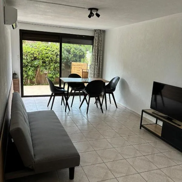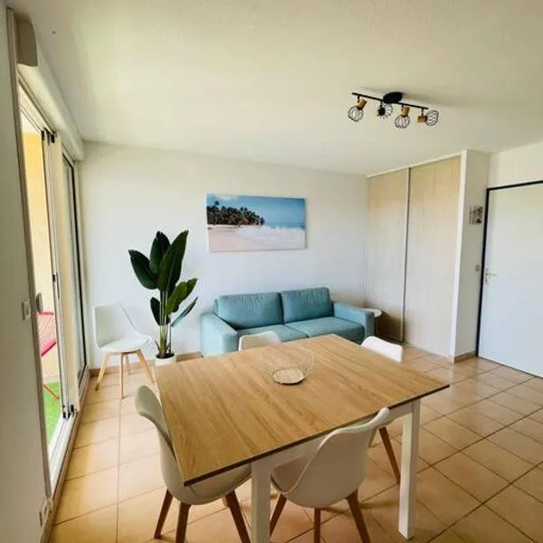 F2 Blanc Bleu está ubicado en Sainte-Marie-la-Mer, a 2,5 km de Plage de Sainte-Marie y a 13 km de Estadio Gilbert Brutus, y ofrece una pileta al aire libre en temporada y aire acondicionado.